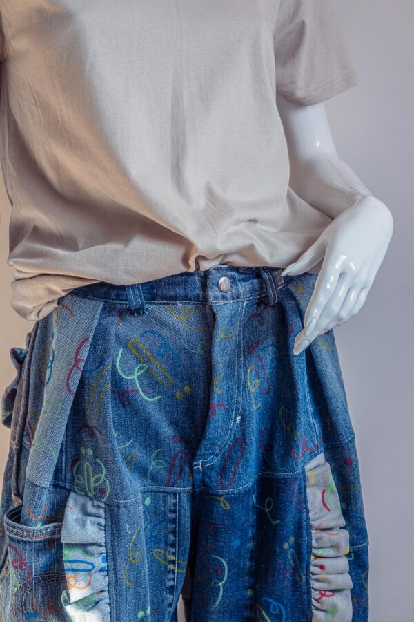 Pantalon fait à 99% de trucs upcyclé.