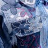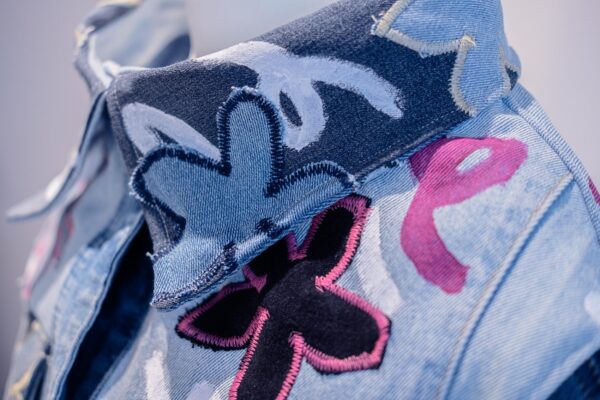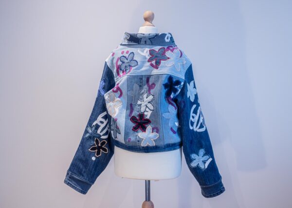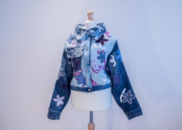 Veste en jeans faite à 99% de trucs upcyclé.